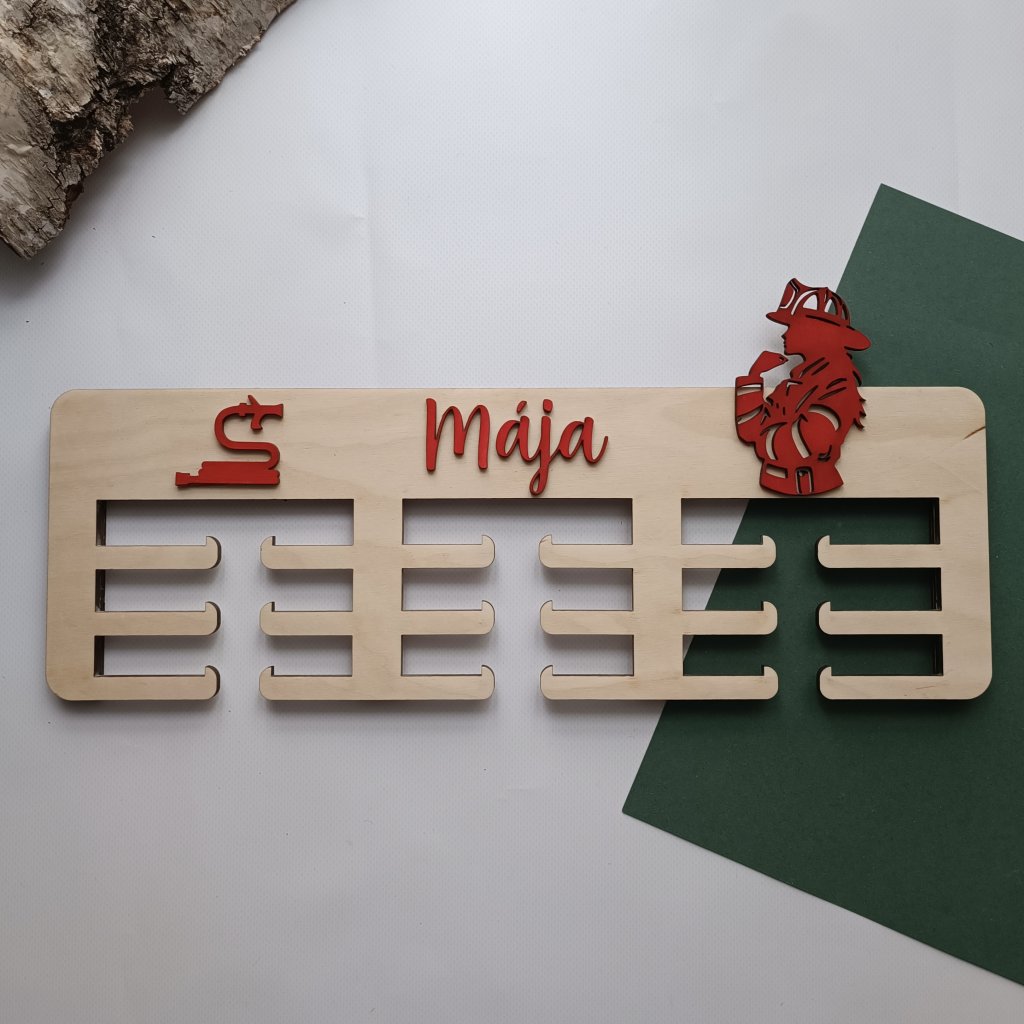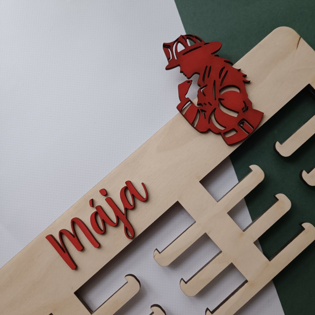 Dřevěný držák na medaile s barevným vlastním motivem